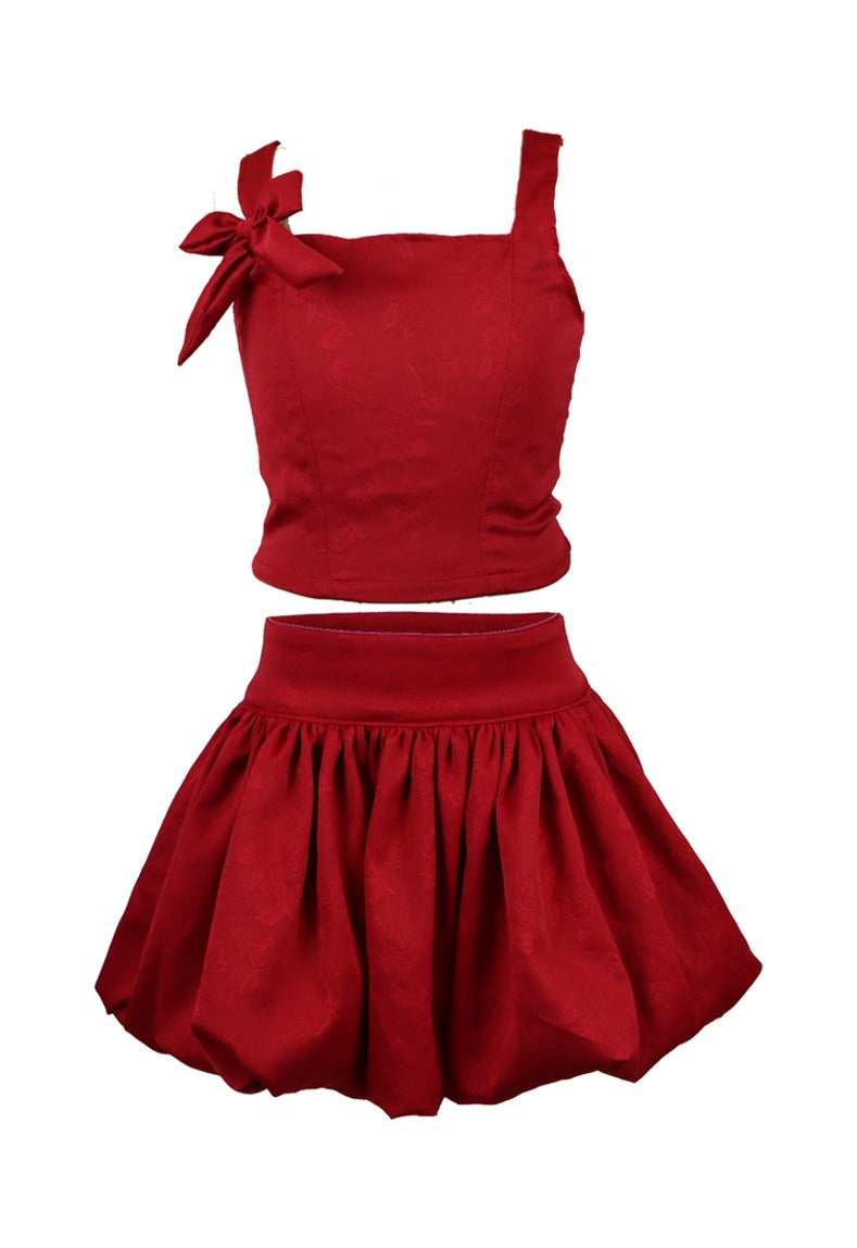 *Flower Embossed Bow Sleeveless Top*